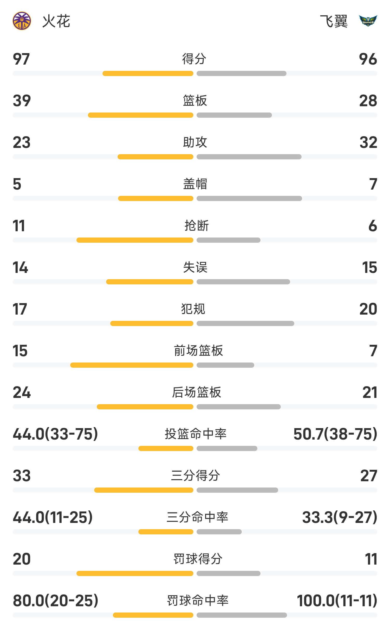 WNBA战报:佩奇29分&李月汝3分1篮板,火花五人得分上双以97-96险胜飞翼